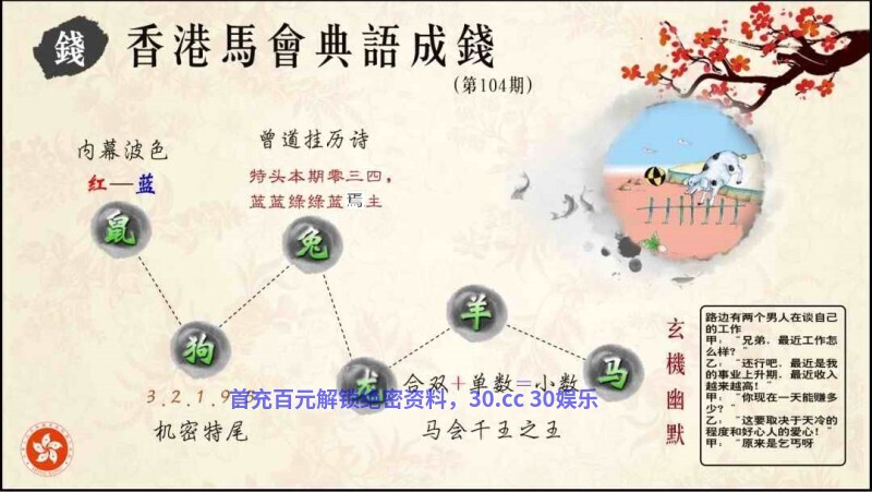 109期:推荐生活幽默/财神奇缘/两波中特/马会玄机/港彩九龙玄机
